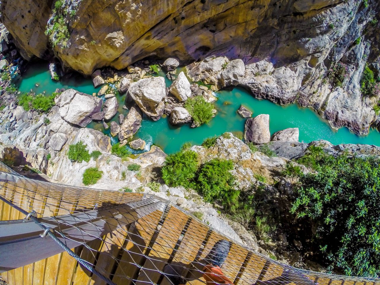 El Caminito del Rey es una pasarela situada en Ardales (Málaga) de más de 3 kilómetros. Adosada a la roca en el interior de un cañón, colgando a más de 100 metros por encima del río. En unas paredes casi verticales. Con tramos más peligrosos que otros, la ruta tradicional de 3km es apta para todos los públicos y muy recomendable por sus vistas. Su recorrido total son 7,7 km. De los cuales 4.8 kms. de accesos y 2,9 km de pasarelas.