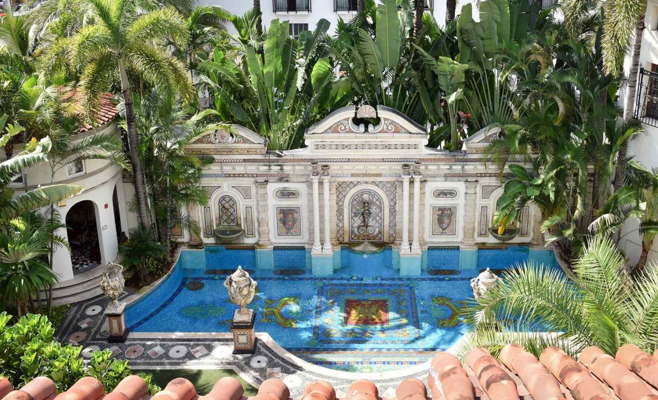 Desde luego, el lujo no falta: su famosa piscina con azulejos de oro, suites con frescos en las paredes, baños de mármol italiano,... podemos seguir y seguir pero lo mejor es que lo veas por ti mismo. Así que prepárate para poner rumbo a Miami Beach, aunque sea desde el sofá.